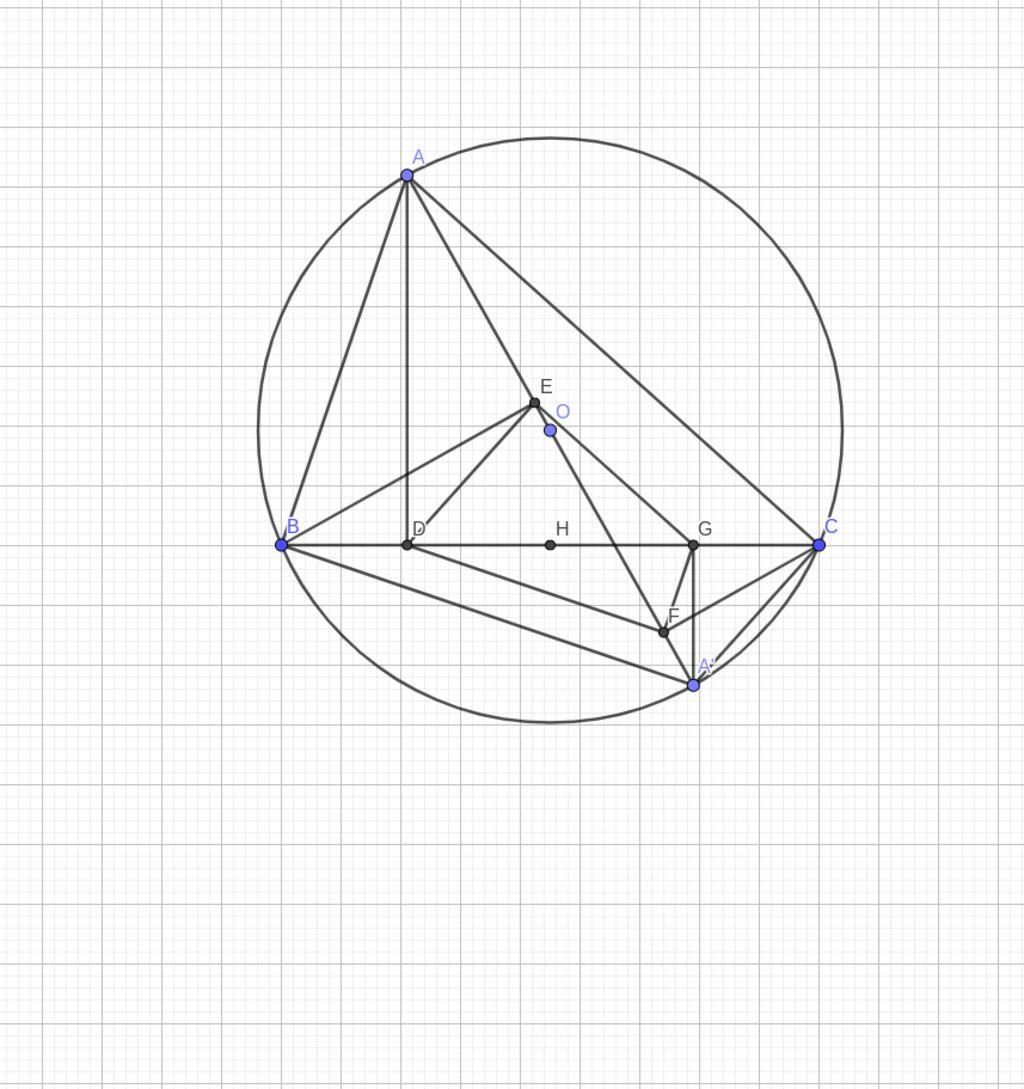 Ta có: $\widehat{BEA'}=\widehat{BGA'}=90^o\to BEGA'$ nội tiếp đường tròn đường kính $A'B$
