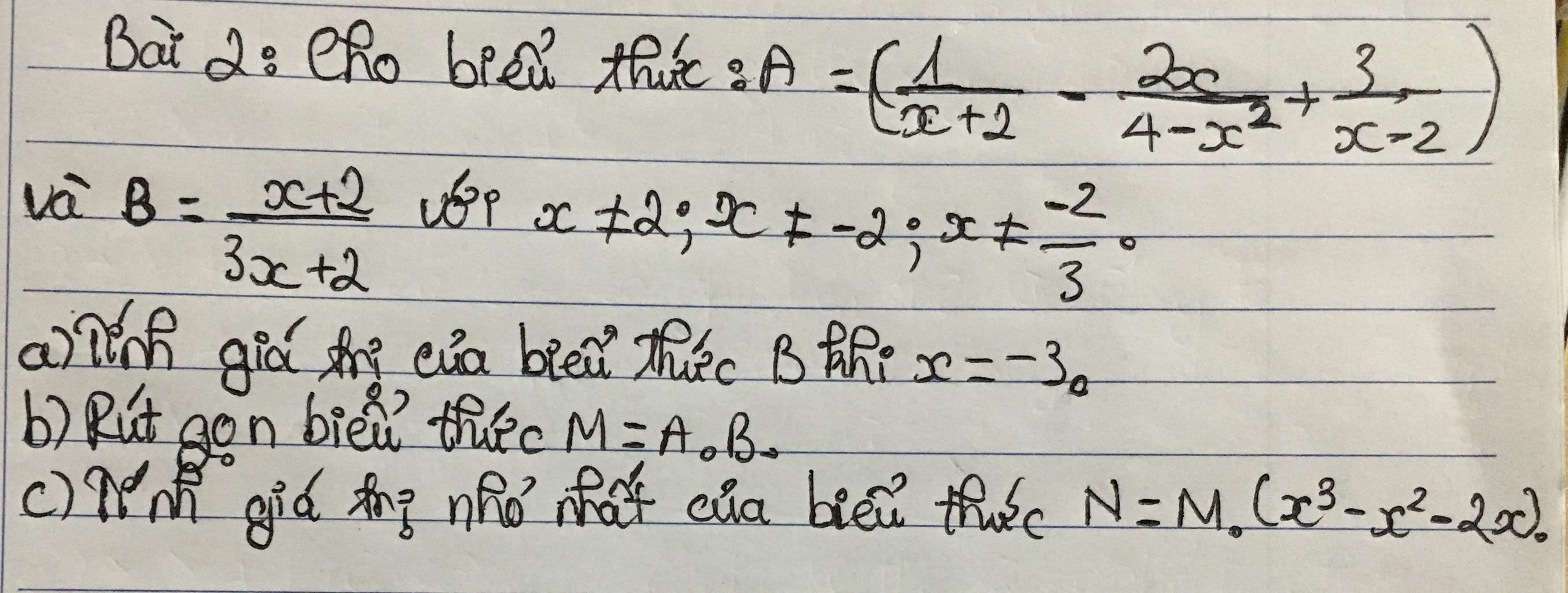 $\to A=\dfrac{x-2}{\left(x+2\right)\left(x-2\right)}+\dfrac{2x}{\left(x+2\right)\left(x-2\right)}+\dfrac{3\left(x+2\right)}{\left(x+2\right)\left(x-2\right)}$