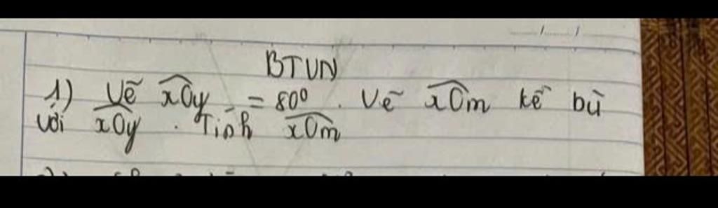 `->` `\hat{xOy} ` bù kề `\hat{xOm}` nên :