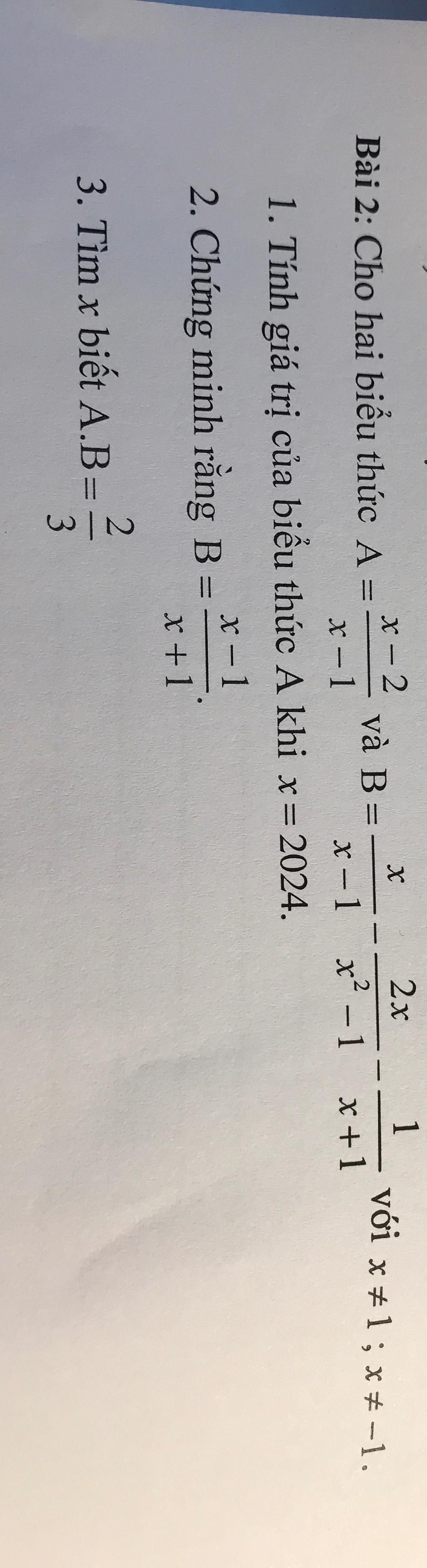 `1)` Thay `x = 2024` (TMĐK) vào biểu thức `A`, ta có: