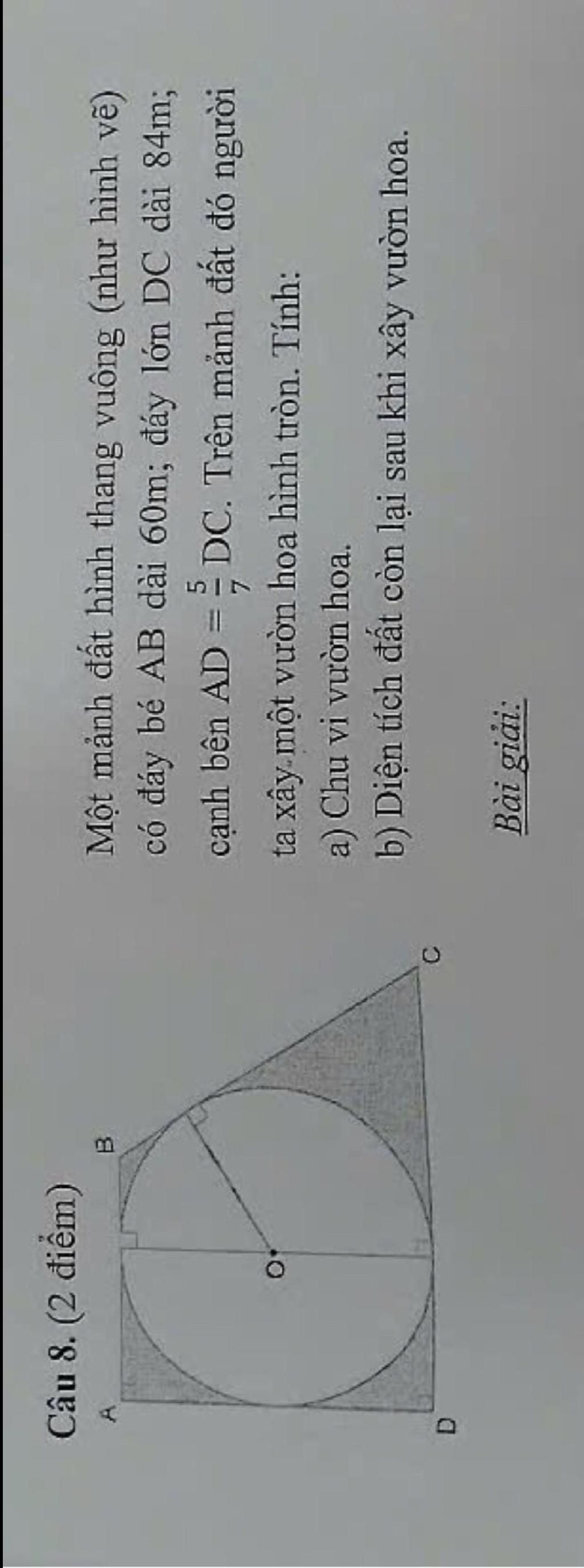 Diện tích đất còn lại sau khi xây vườn hoa là: