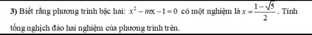 Tổng nghịch đảo của hai nghiệm pt trên là: