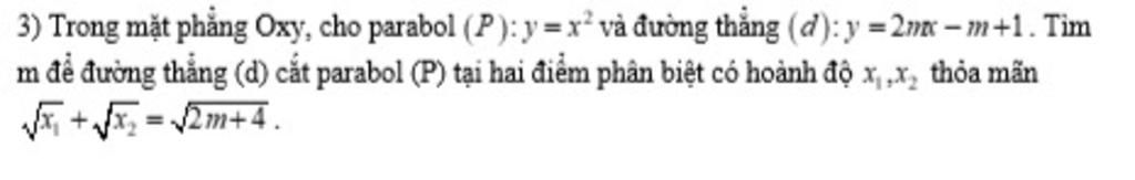 Để `(d)` cắt `(P)` tại `2` điểm phân biệt thì: