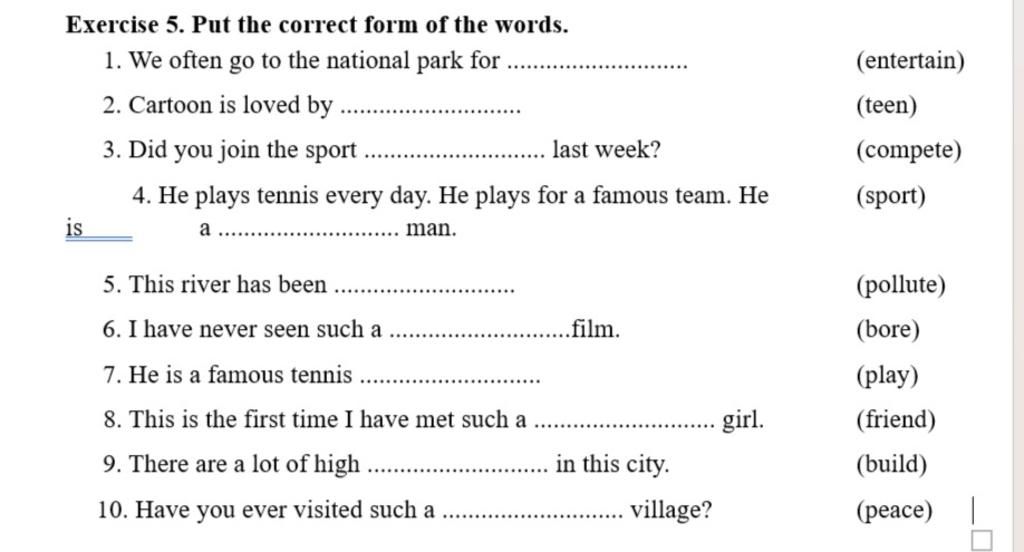 `5.` polluted (v) `:` ô nhiễm
