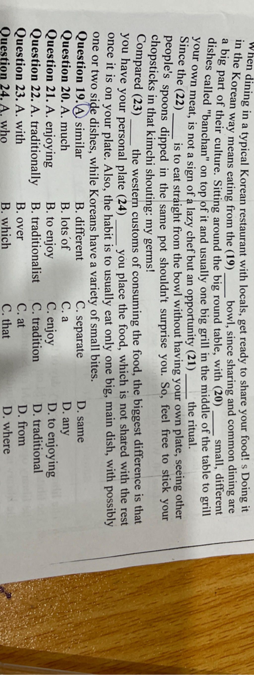in the Korean way means eating from the (19) bowl, since sharing and common dining are