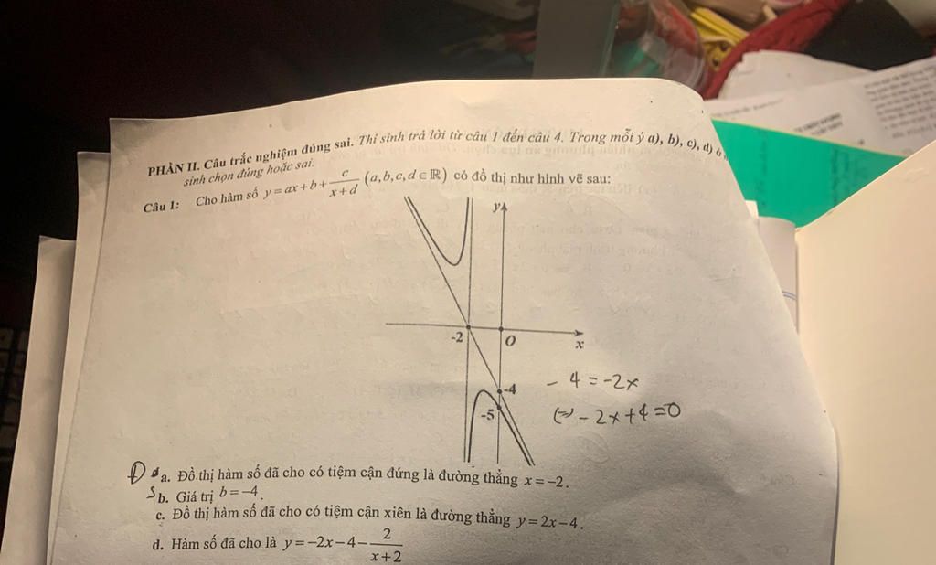 c) Sai. Tiệm cận xiên là `y=-2x-4`