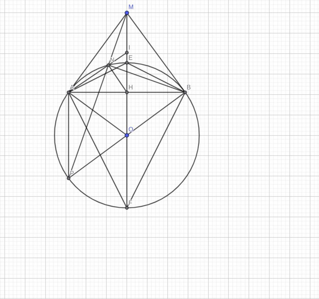 Từ điểm M nằm ngoài đường tròn O, kẻ 2 tiếp tuyến MA, MB tới (O). A, B là các tiếp điểm, gọi H là giao điểm của AB với MO. E và F là các giao điểm của đường thẳng MO với đường tròn O,( với ME <MF.)