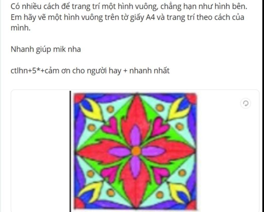 Em hãy vẽ một hình vuông trên tờ giấy A4 và trang trí theo cách của