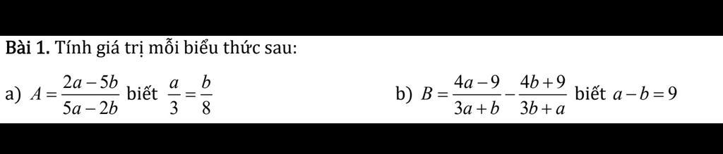 `a) Đặt a/3=b/8=k=>a=3k;b=8k`