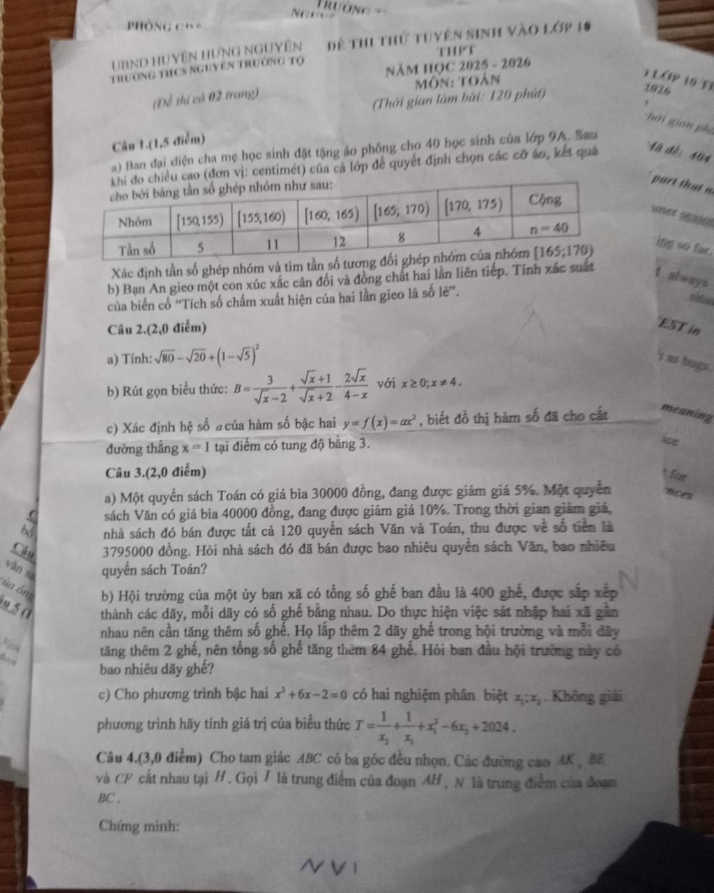 a) Ban đại diện cha mẹ học sinh đặt tặng áo phông cho 40 học sinh của lớp 9A, ...