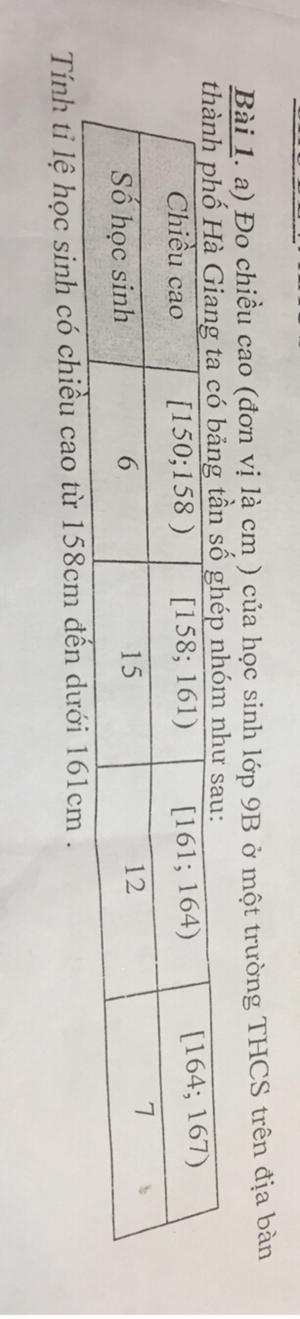 `->` Tỉ lệ phần trăm của số học sinh có chiều cao từ `158` `cm` đến dưới `161` `cm` là:
