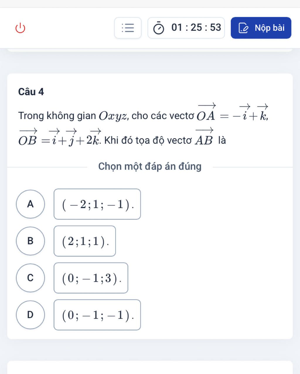 `=> \vec{OA} = (-1;0;1)`