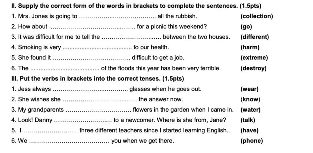 `-` Câu điều ước trái ngược với hiện tại: S + wish + S + V(lùi thì)