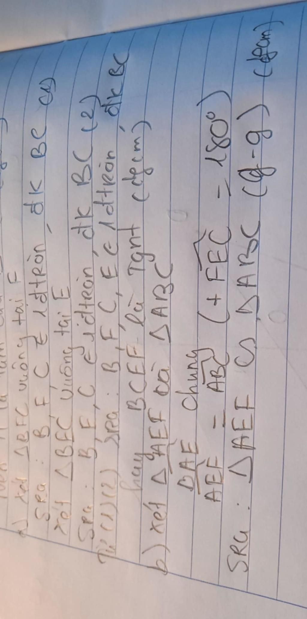 `-> 3` điểm `B, E, C` thuộc đường tròn đường kính `BC`