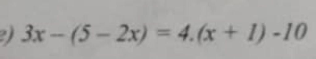 `e, 3x - ( 5-2x) = 4.(x+1) -10`
