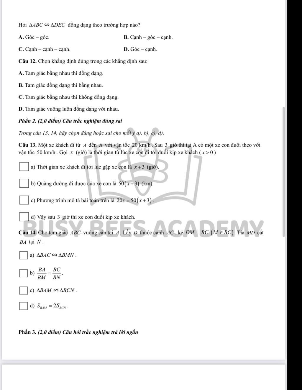 `-` Hai tam giác đồng dạng chưa chắc đã bằng nhau