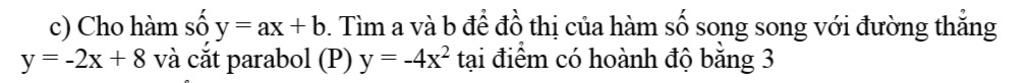Đồ thị hàm số `y=ax+b (d)` $\parallel$ dt `y=-2x+8`