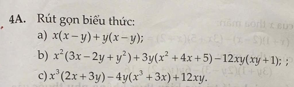`b)` `x^2.(3x-2y+y^2)+3y.(x^2+4x+5)-12xy.(xy+1)`