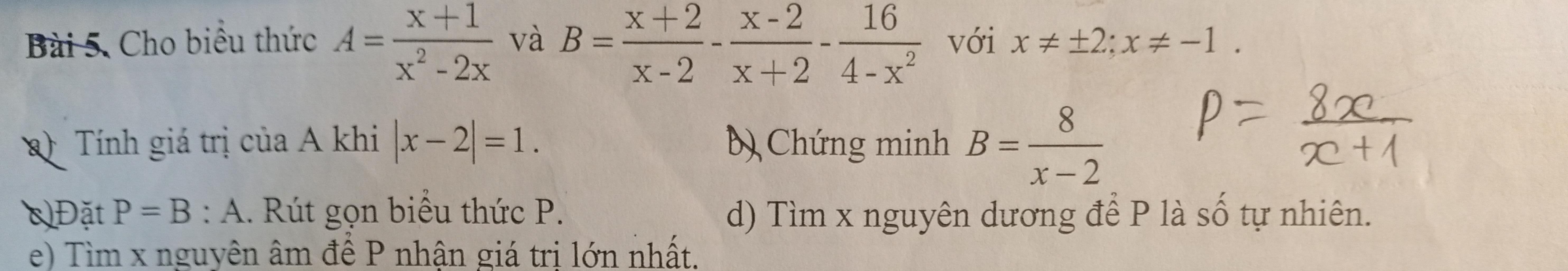 $P=B:A=\dfrac8{x-2}:\dfrac{x+1}{x^2-2x}$