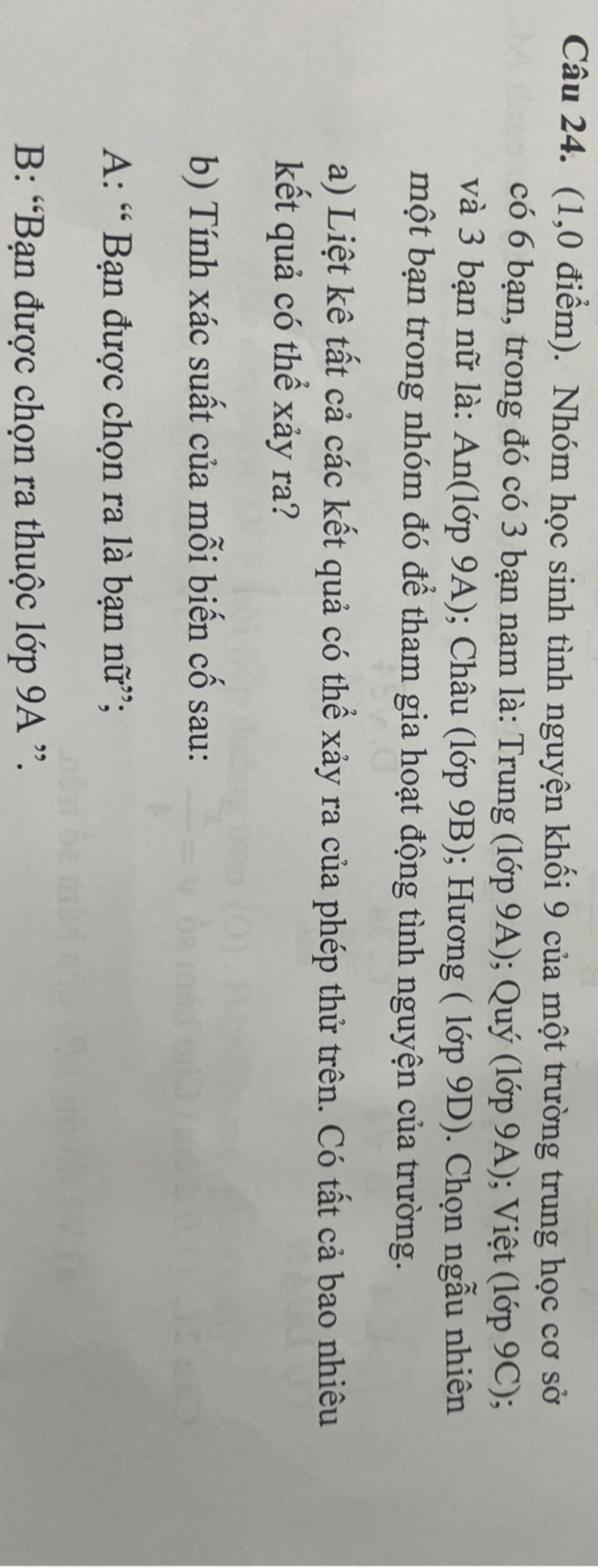 Các bạn lớp 9A: Trung, Quý, An → Có 3 bạn