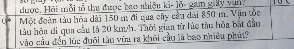 Thời gian để tàu hỏa bắt đầu vào cầu đến lúc đuôi tàu vừa ra khỏi cầu là :