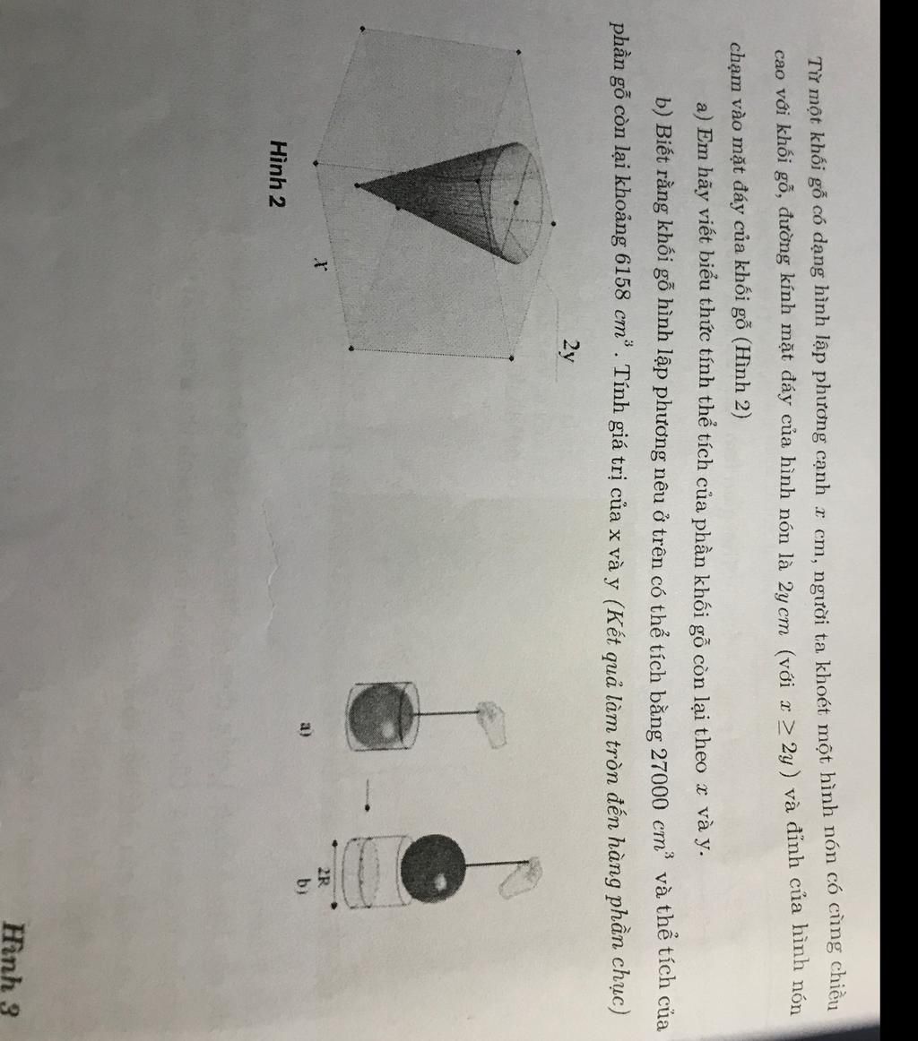 cao với khối gỗ, đường kính mặt đáy của hình nón là 24cm (với x ≥ 2y) và đỉnh của hình nón