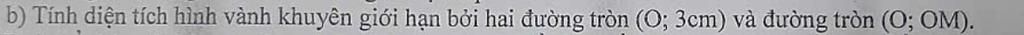Diện tích hình vành khuyên giới hạn bởi $(O,3cm), (O, OM) $ là:
