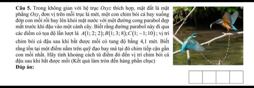 Khoảng cách từ điểm đó đến vị trí chim bói cá đậu sau khi bắt được mồi là :