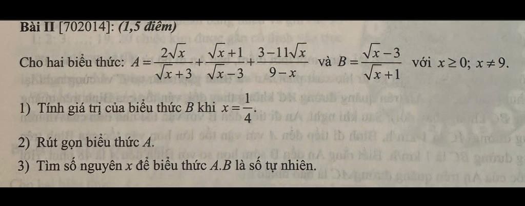 `-> A.B` là STN khi `3` $\vdots$ `\sqrt{x}+1` và `(3)/(\sqrt{x}+1)<=3` (luôn đúng `AA x>=0; x!=9; x in ZZ`)