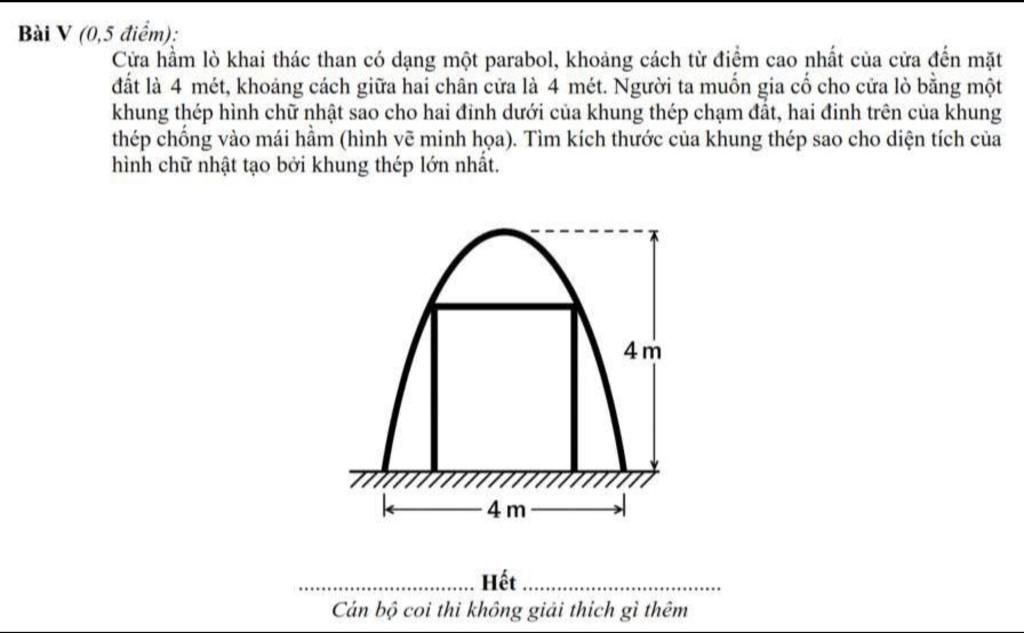 $\to$Chiều dài khung là $\dfrac{4\sqrt3}3,$ chiều rộng là $-(\dfrac{2\sqrt3}3)^2+4=\dfrac83$