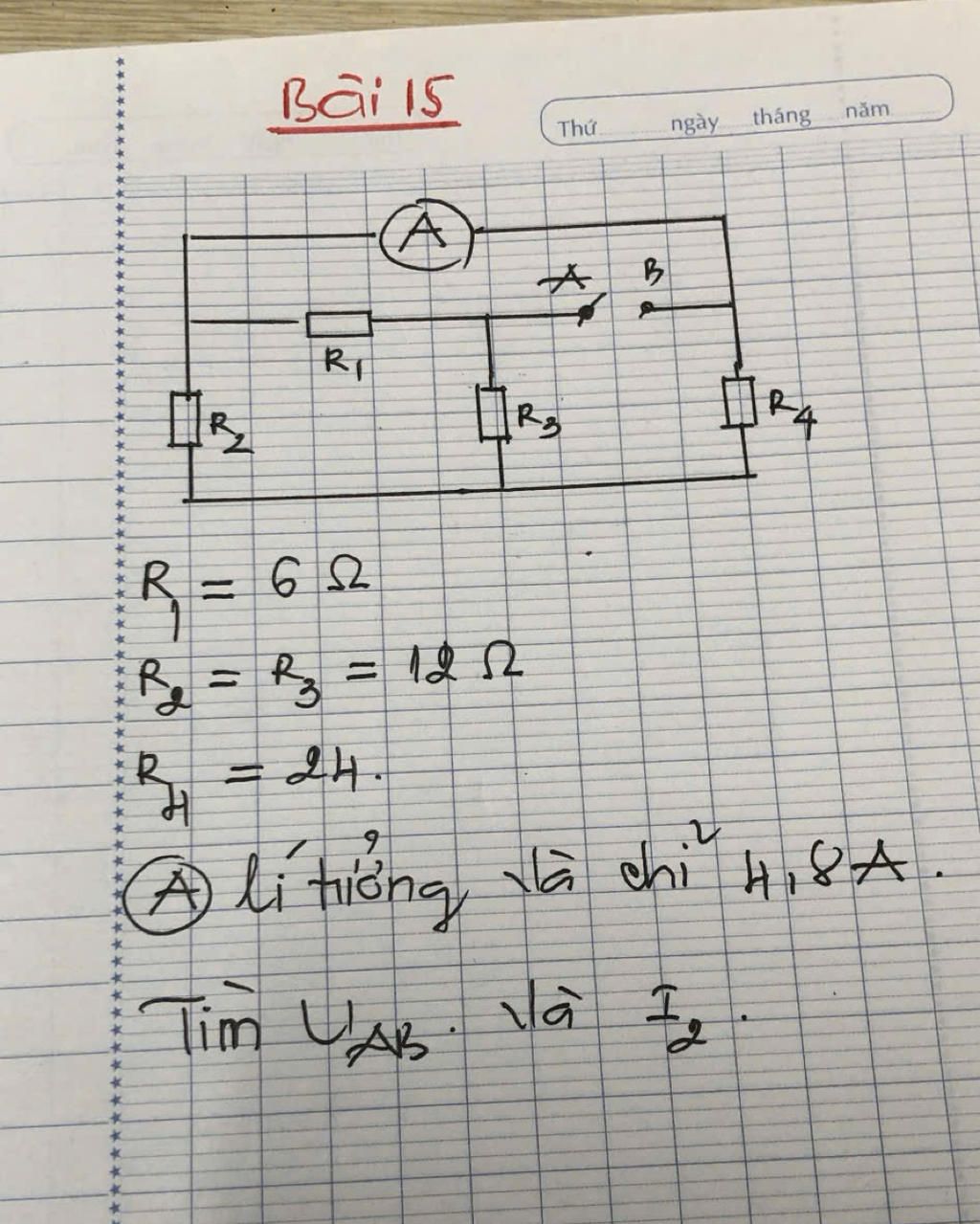 `U_[AB] = 24 (V)` và `I_2= 0,8 (A)`