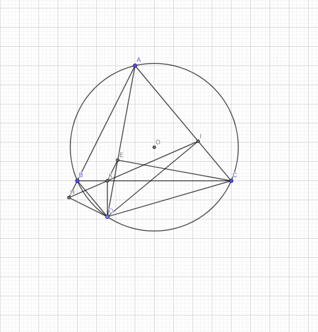 $\to A, H, D, I\in$ đường tròn đường kính $AD$
