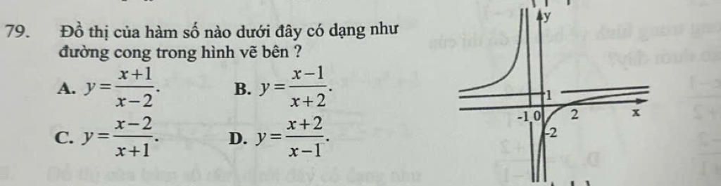 +) Ta thấy đồ thị đi qua điểm (2,0) và (0,-2) --> chỉ có đáp án C thỏa mãn 2 điểm này