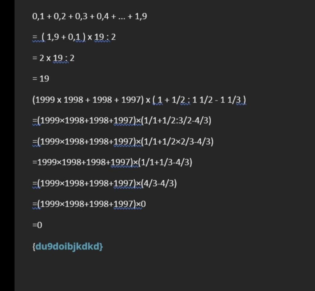 0,1 + 0,2 + 0,3 + 0,4 + ... +1,9(tổng có 19 số hạng)
