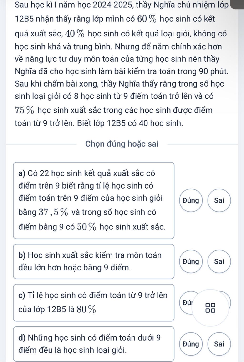 12B5 nhận thấy rằng lớp mình có 60% học sinh có kết