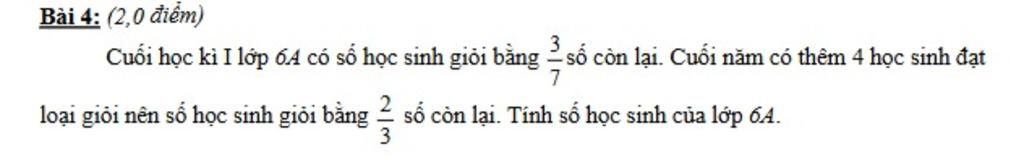 Vì đầu năm số học sinh giỏi $=\dfrac37$ số còn lại$\to$Số học sinh giỏi $=\dfrac3{3+7}=\dfrac3{10}$ tổng số học sinh lớp $6A$