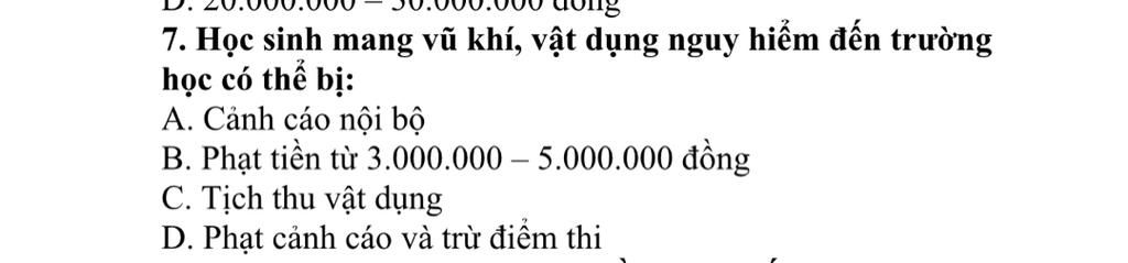 `@` Các hình thức phạt khác (như phạt tiền, cảnh báo) tùy vào mực độ vi phạm, mục đích sử dụng, độ tuổi,... của học sinh