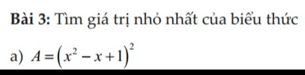`\text{Vậy giá trị nhỏ nhất của A}``=(3/4)^2` `\text{khi}` `x=1/2.`