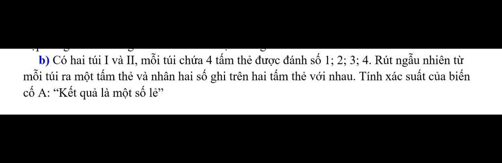 `->` Để tích là số lẻ , ta phải chọn `1` số lẻ ở túi `I` và `1` số lẻ ở túi `II`