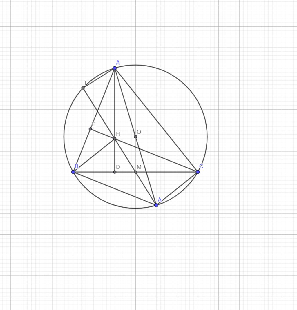 tam giác cắt nhau tại H. Gọi M là trung điểm của BC. Tia MH cắt đường tròn (O) tại I.