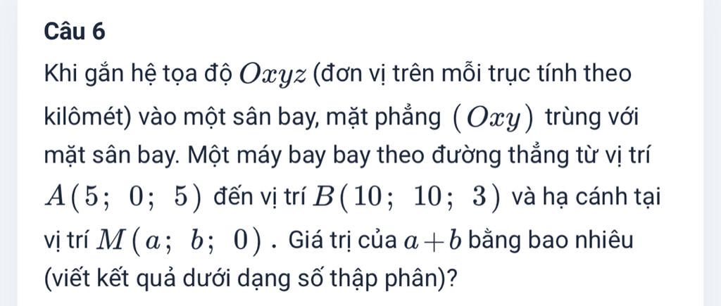 Ta có: $\vec{AB}=(5, 10, -2)$