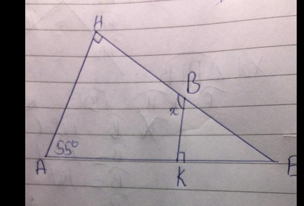 góc HBK hay x và KBE là 2 góc kề bù mà 2 góc góc kề bù có số đo = 180 độ