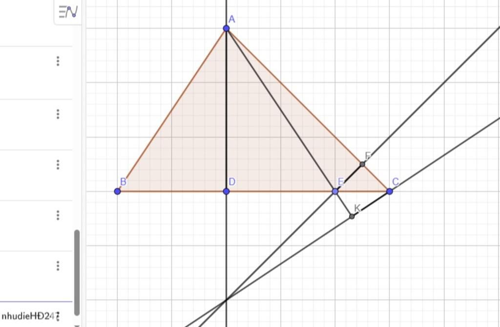 , đường cao AD. Trên đoạn DC lấy điểm E sao