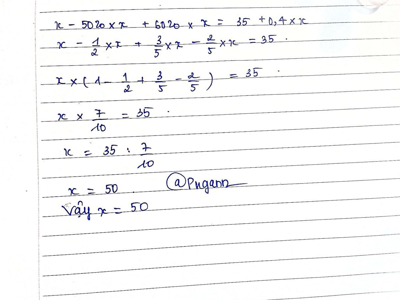 `x = 35 : 7/10`