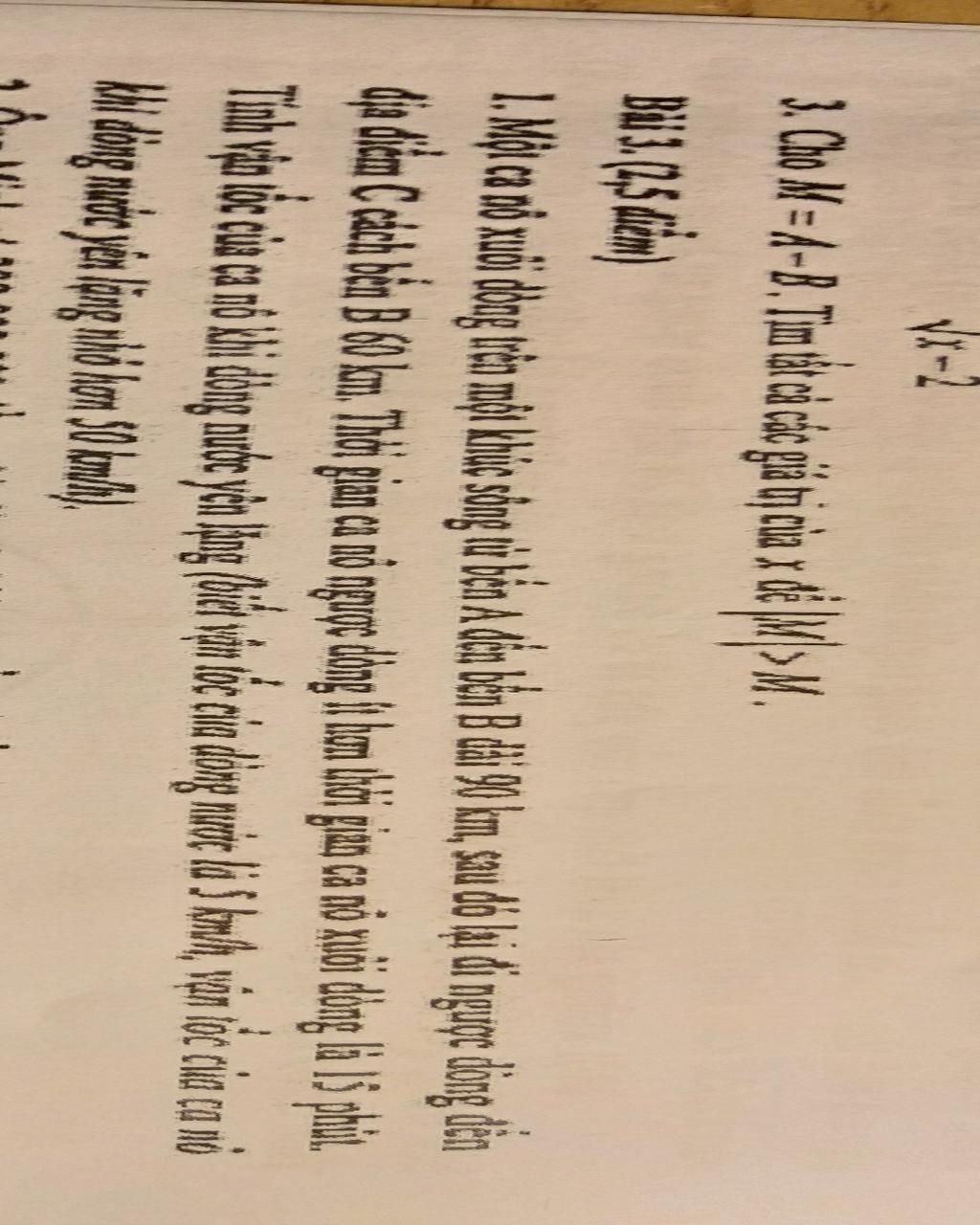 Vận tốc của ca nô khi ngược dòng là `x-5` $(km/h)$