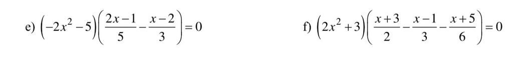 $a)$ `(-2x^2-5)((2x-1)/(5)-(x-2)/(3))=0`