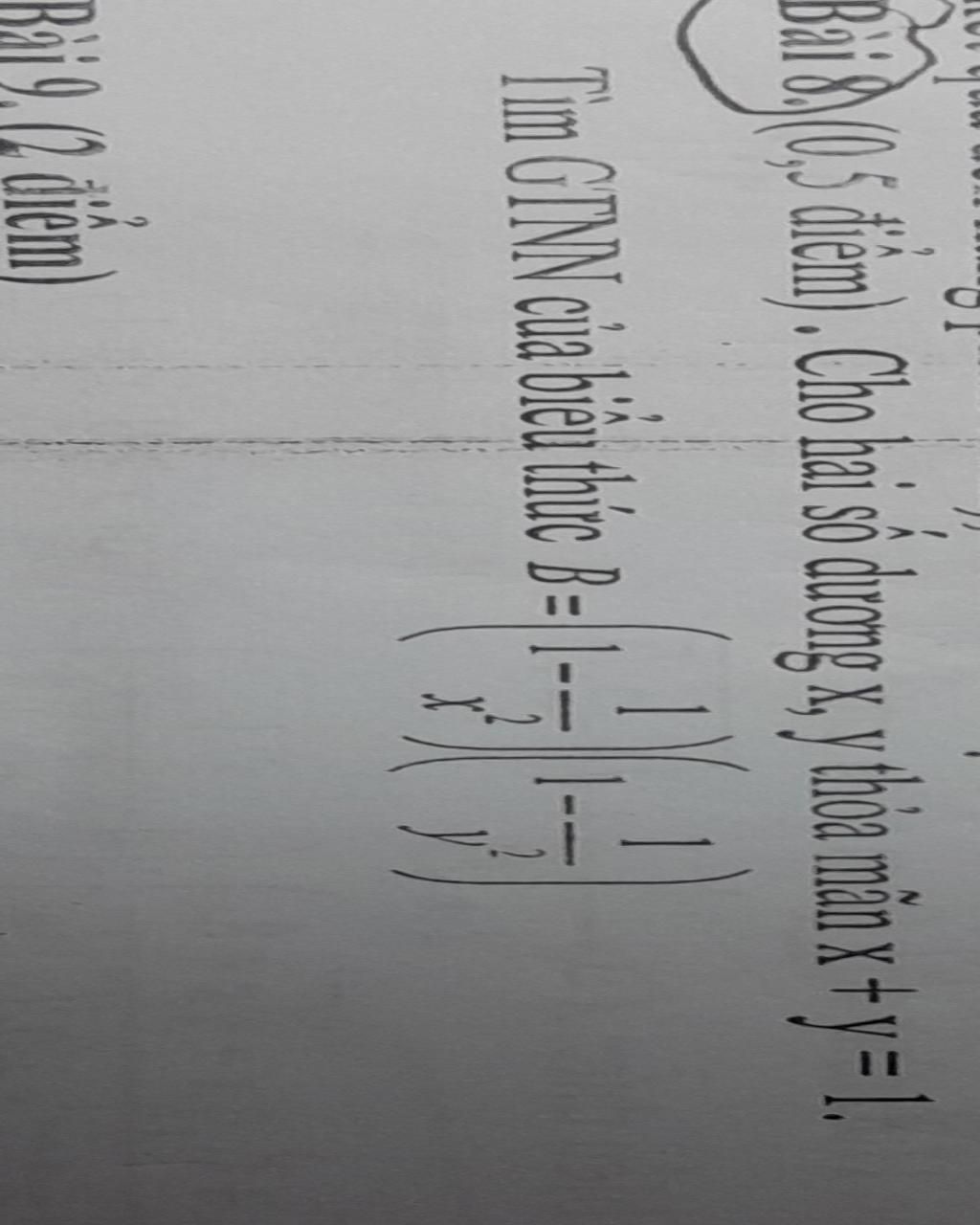 Vậy `B_(mi n) = 9` khi `x = y = 1/2`