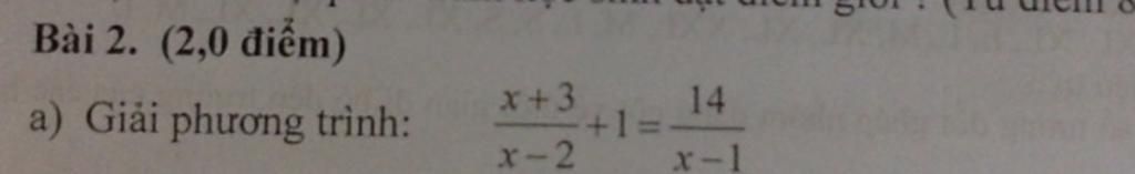 `(x+3)/(x-2)+1=14/(x-1)\ (x\ne2,x\ne1)`
