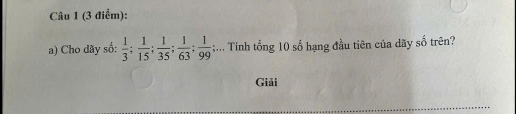 Tổng `10` số hạng đầu tiên của dãy số là: