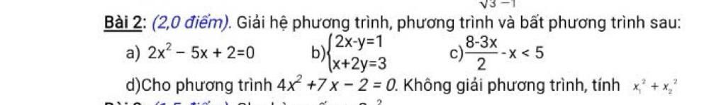 `d)` Ta cho `PT(1)` là: `4x^{2}+7x-2=0`